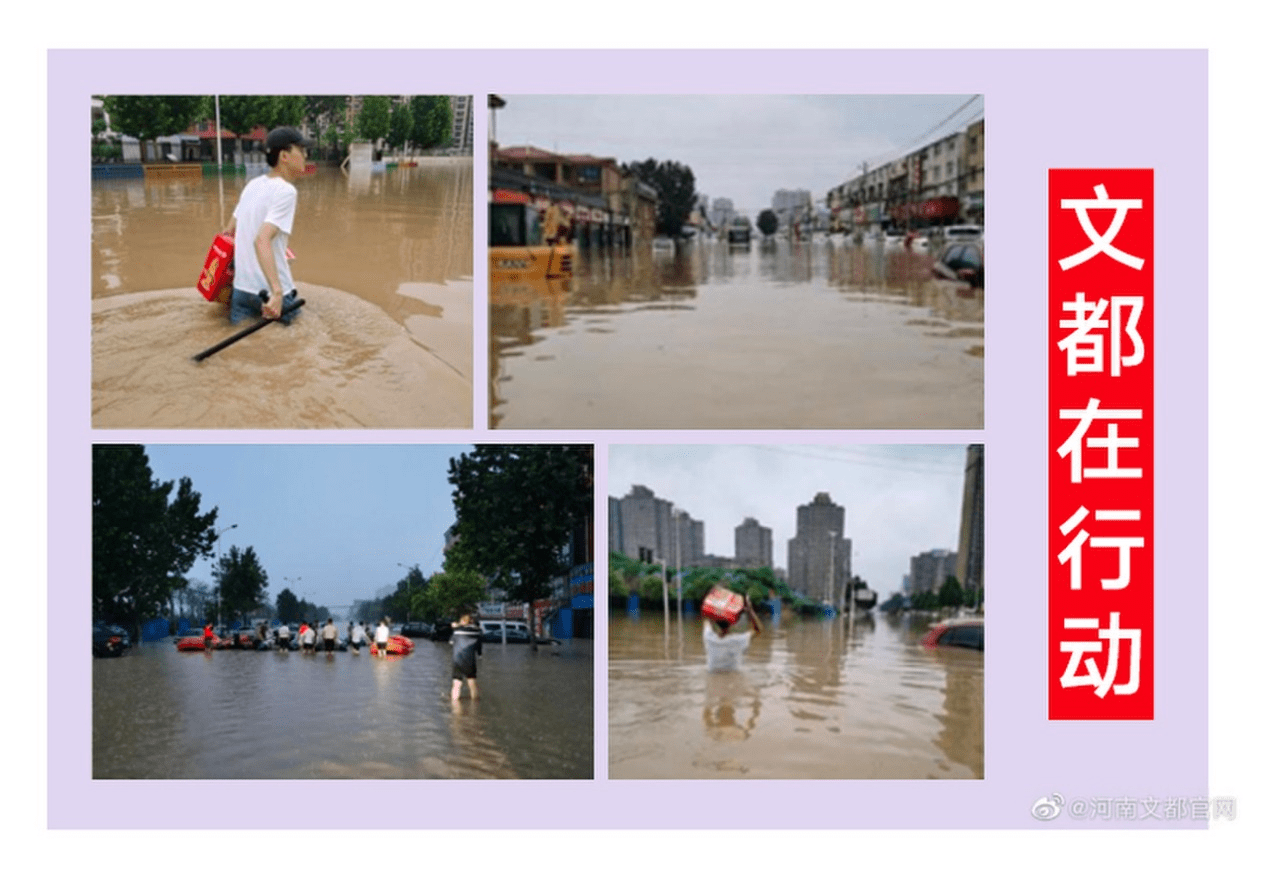 一方有难,八方支援。河南灾情发生后,文都教育集团立即向河南校区拨付救灾应急专款,用于为受困师生采购必须生活物资。文都河南的全体员工,紧急成立防汛救灾指挥小组,以学生安危为第一要务,在政府相关部门和社会各界人士的帮助下,积极开展自救。河南文都老师以身涉水、头顶物资、克服重重困难为学员运送救援物资。目前,河南文都师生全体安全,生活学习秩序已恢复。